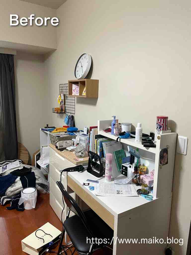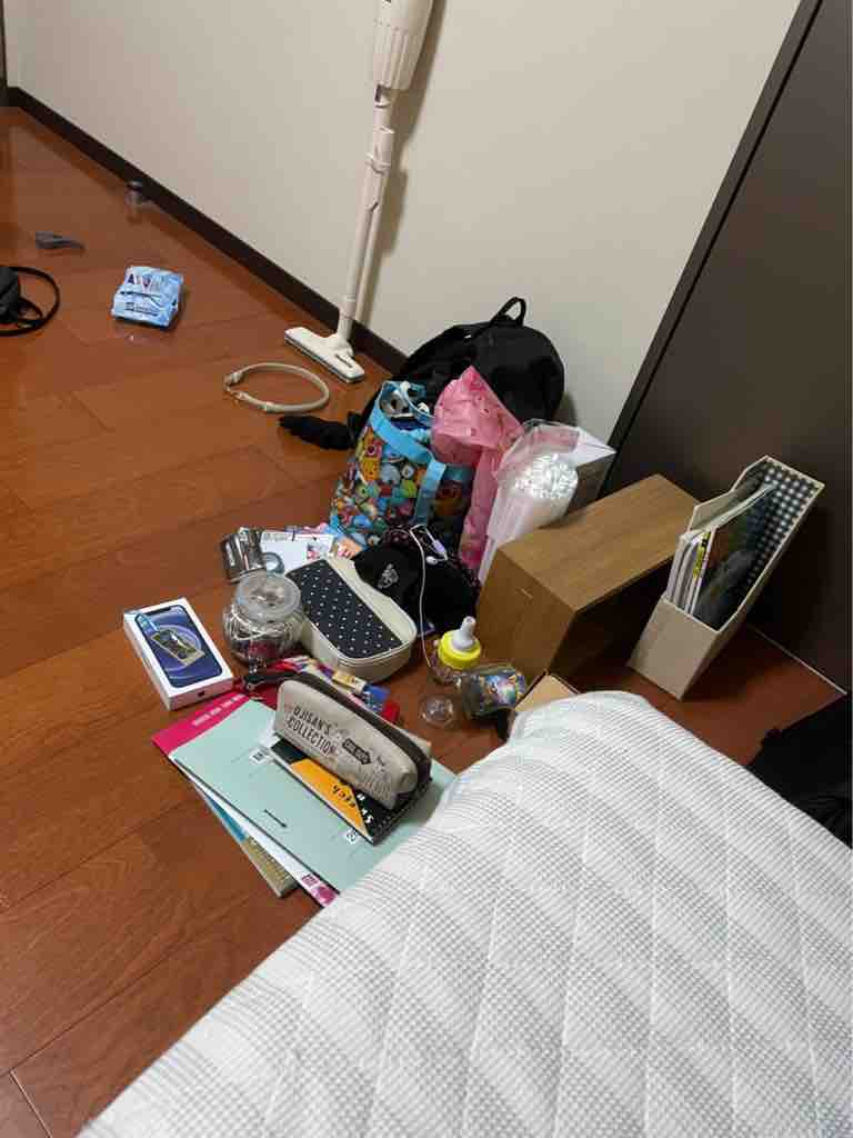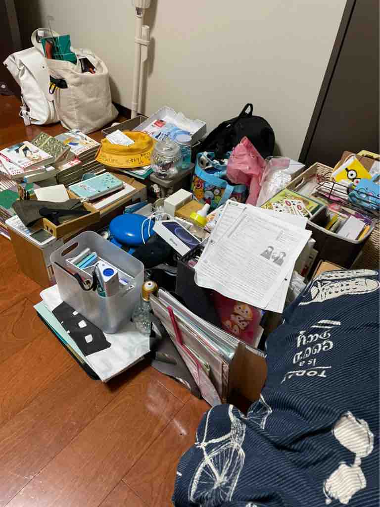 そのせいもあってかモノがうまく収納できず、溢れ出す本や漫画、服や細々したモノで床が埋め尽くされていました。