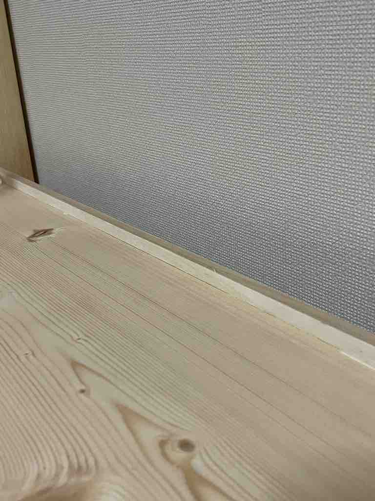 次に下の段から水平になるように棚受けを取り付け、棚板をビスで留めていきます。(床ギリギリなので必死です😅)