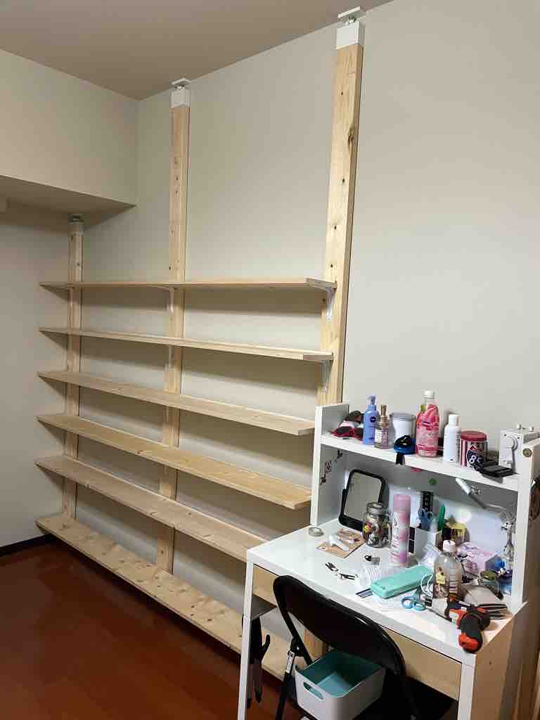 床と天井を突っ張るだけなので、賃貸でも手軽にDIYを楽しむことができます。