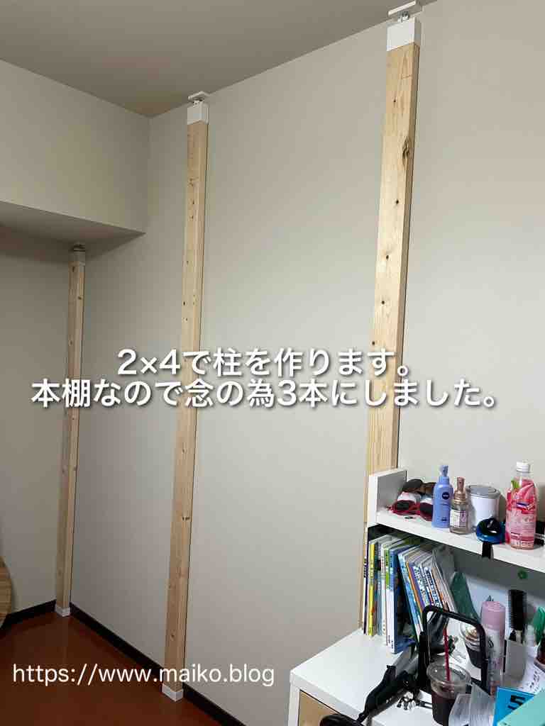 横幅は約2mですが、本は重たいので念の為、柱は3本立てることにしました。