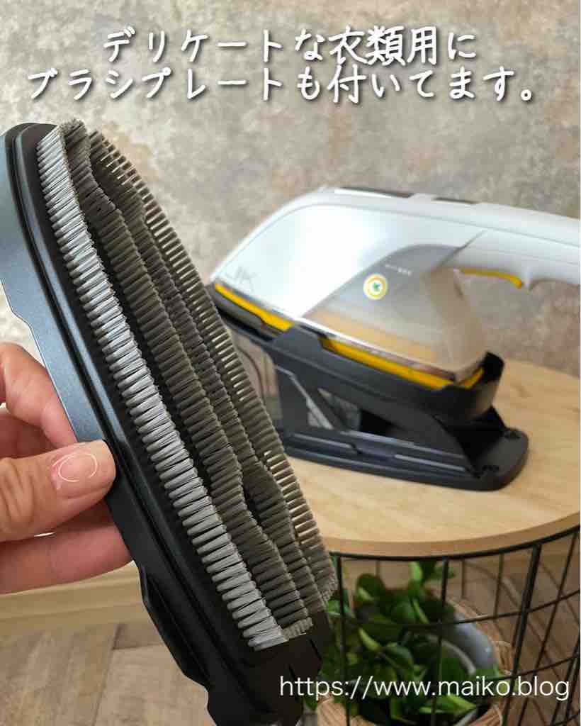 それから熱に弱い衣類に使えるブラシプレートも付いていて、こちらもハンガーに掛けたまま使えるのが便利です。