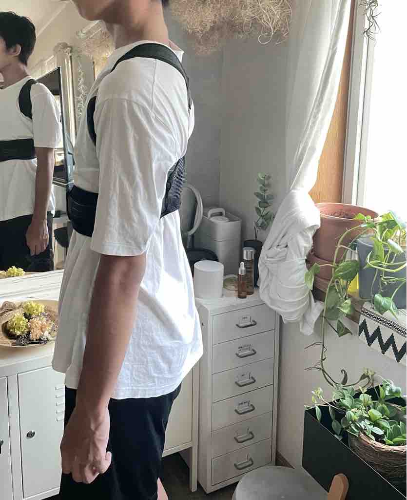 先日の足指パッドは動いていない時に装着しても意味がないので歩く時は足指パッド、じっと座ったりしている時は猫背矯正ベルトを使って美姿勢を目指します。