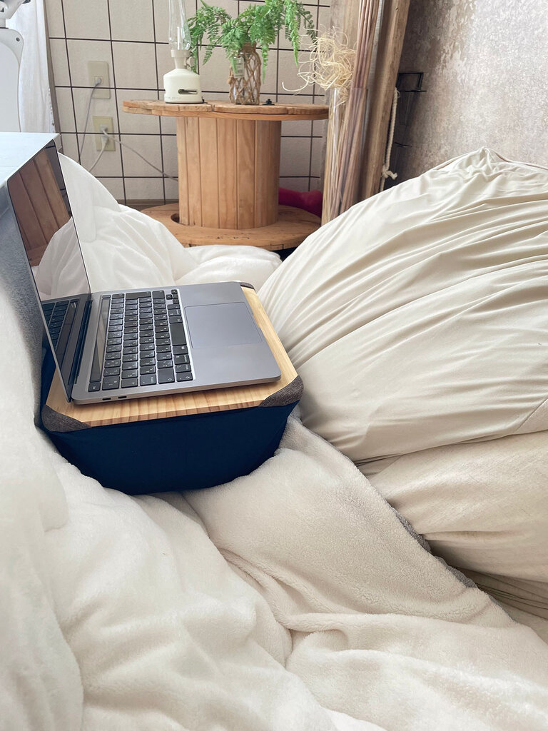 お腹の上にクッションテーブルを置いてスマホをしたり