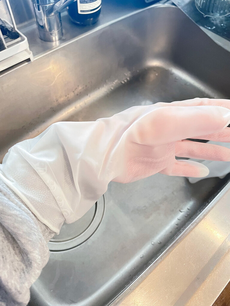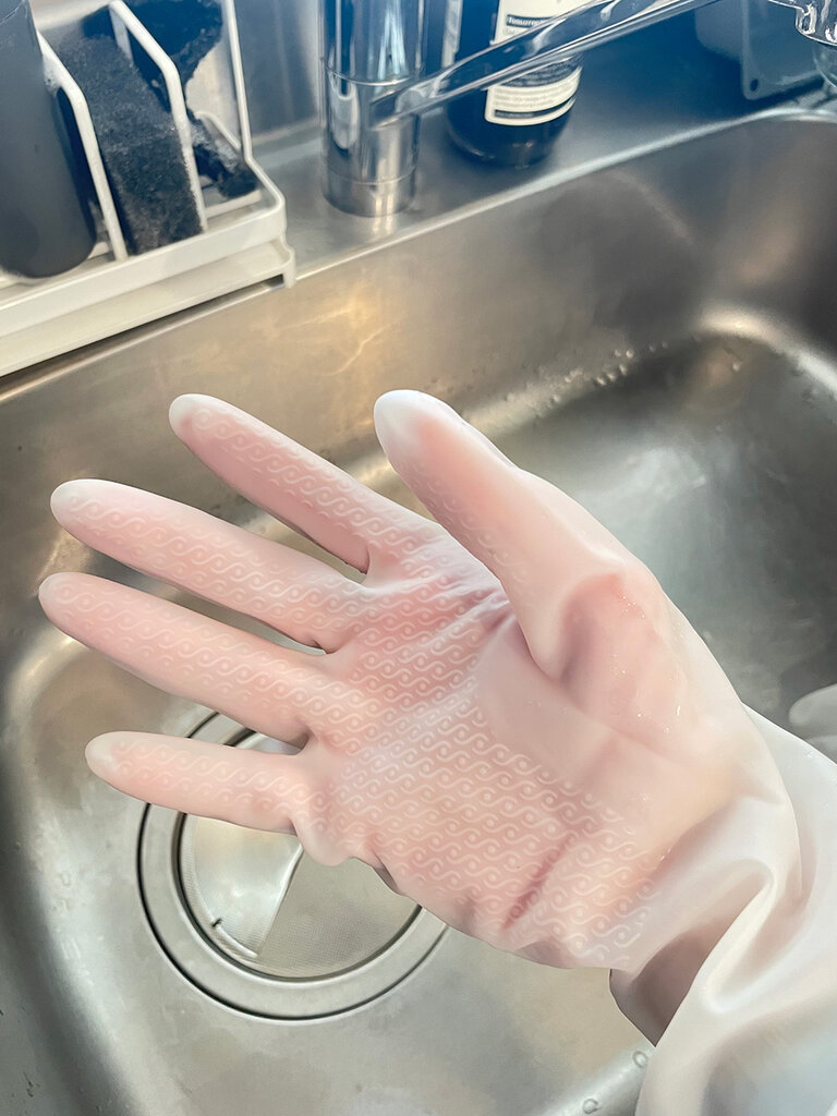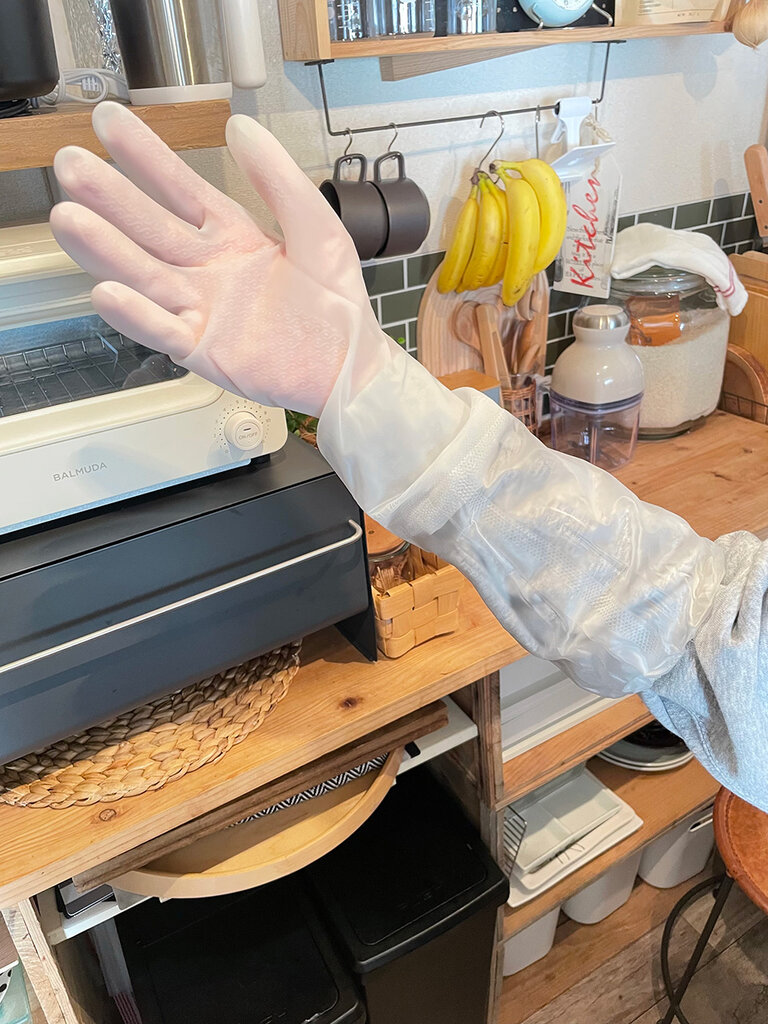 ただでさえ手がガサガサなのでもちろんビニール手袋は必須アイテムですが、ビニール手袋ってずり落ちてきたり、途中で水が入ってきたりして結局邪魔くさくなってしまうんですよね。