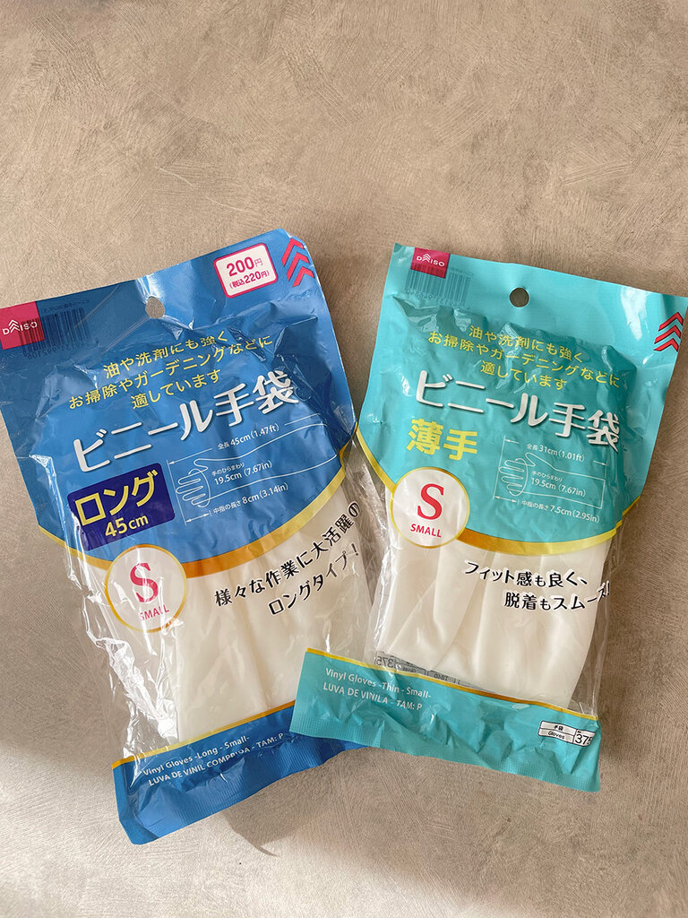 今まではもういいやーと途中で外してしまうコトもあったのですが、ダイソーでそんなストレスをなくしてくれるビニール手袋に出会ってしまいました!
