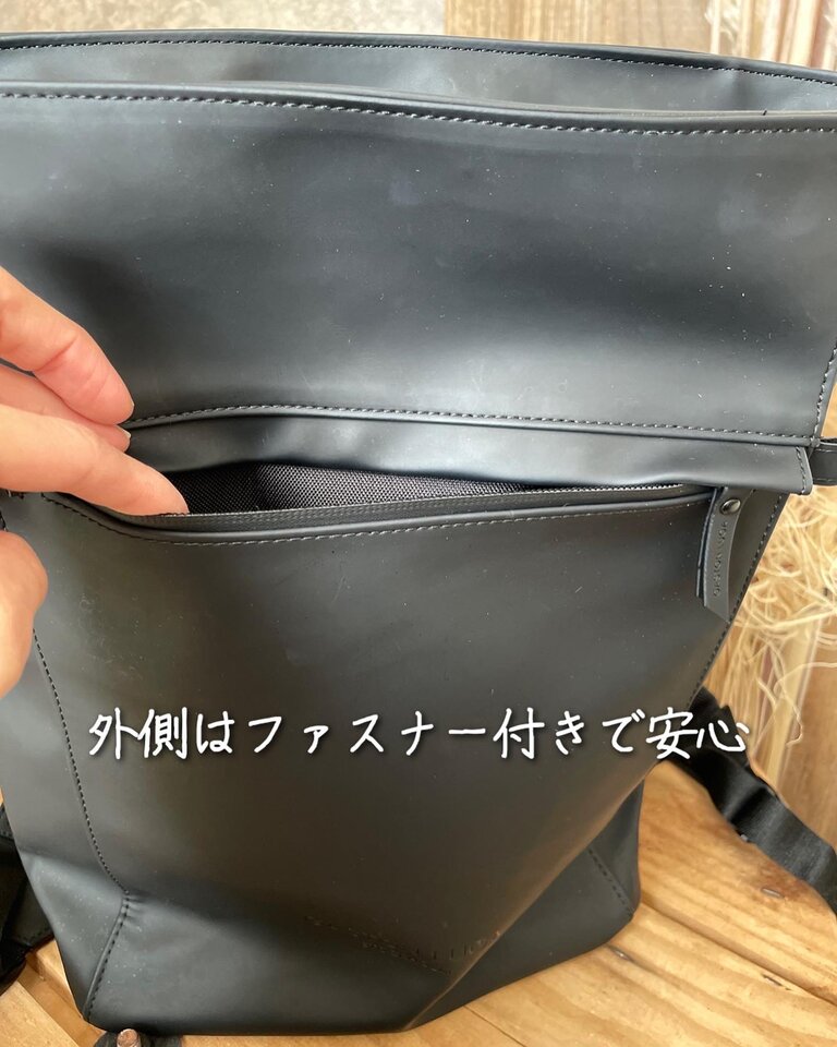 リュックって中が見えなくてごちゃごちゃになりがちだから、ポケットがたくさんあるのは管理がしやすくて便利です。