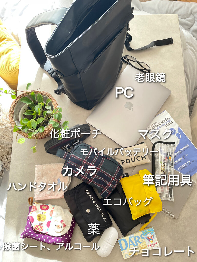 カメラは写真を撮りたい時だけしか持ち歩いていませんが、だいたいいつもこれくらいは持ち歩いています。