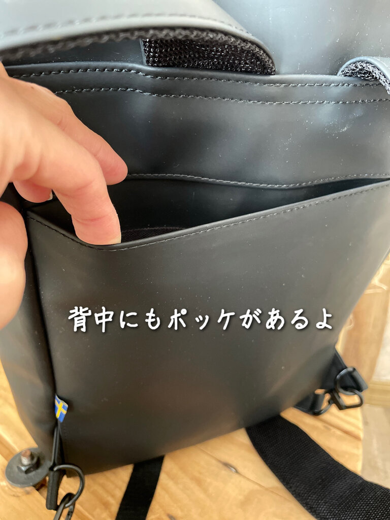 特にこのリュックが気に入っているポイントは、素材がラバー素材で防水加工になっているので汚れを気にしなくて良いところ。