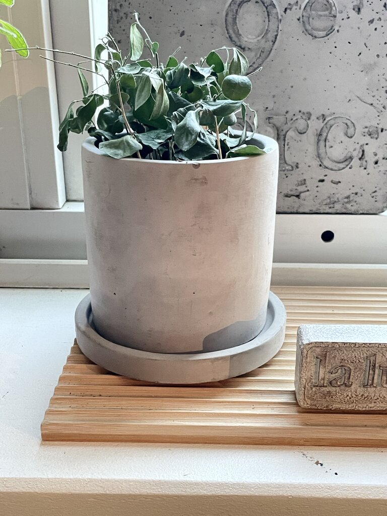 シンプルなモルタルの植木鉢は四角いのもありました。