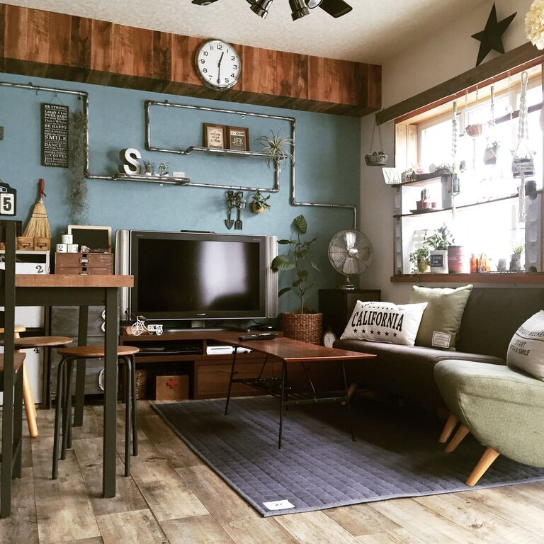 次に流行ったのがカフェ風インテリア、男前インテリア、そして塩系インテリア、インダストリアルインテリアなどカフェっぽさを加えつつ、英字や工業系アイテムを取り入れた黒が多めだったりちょっと暗めのインテリアブーム。