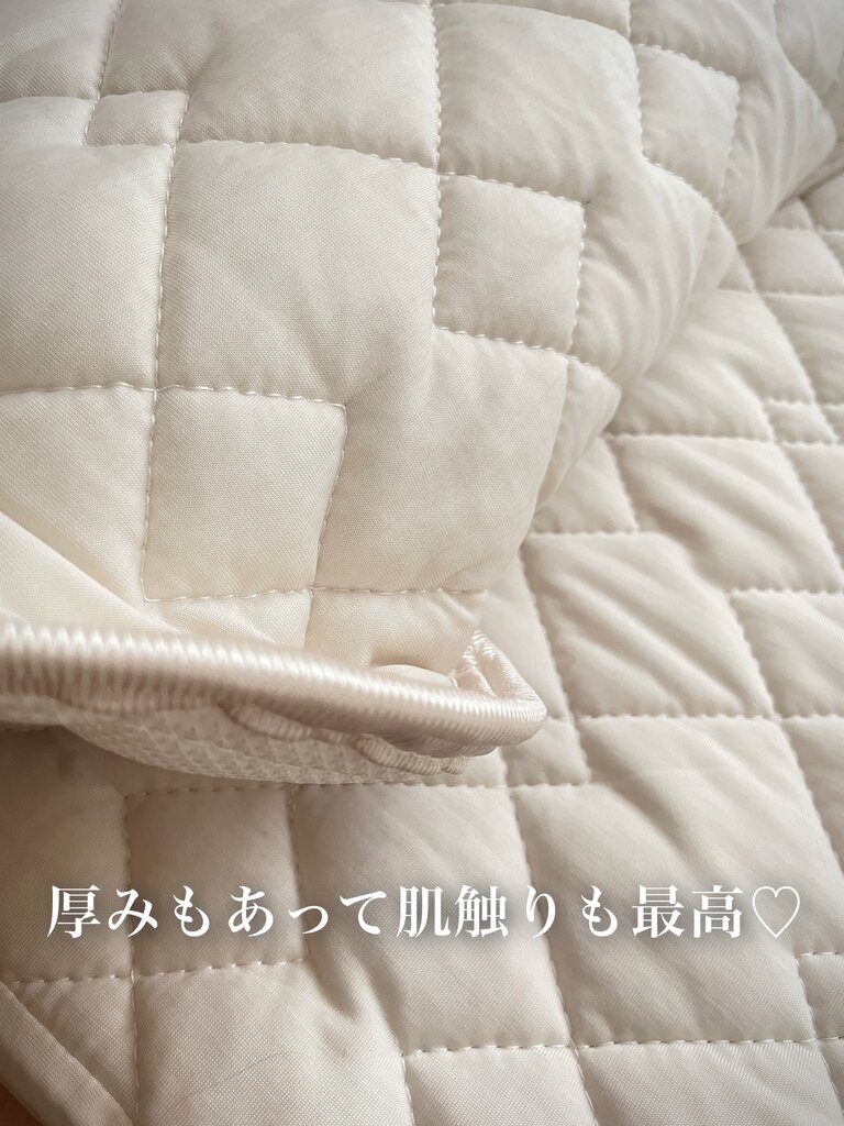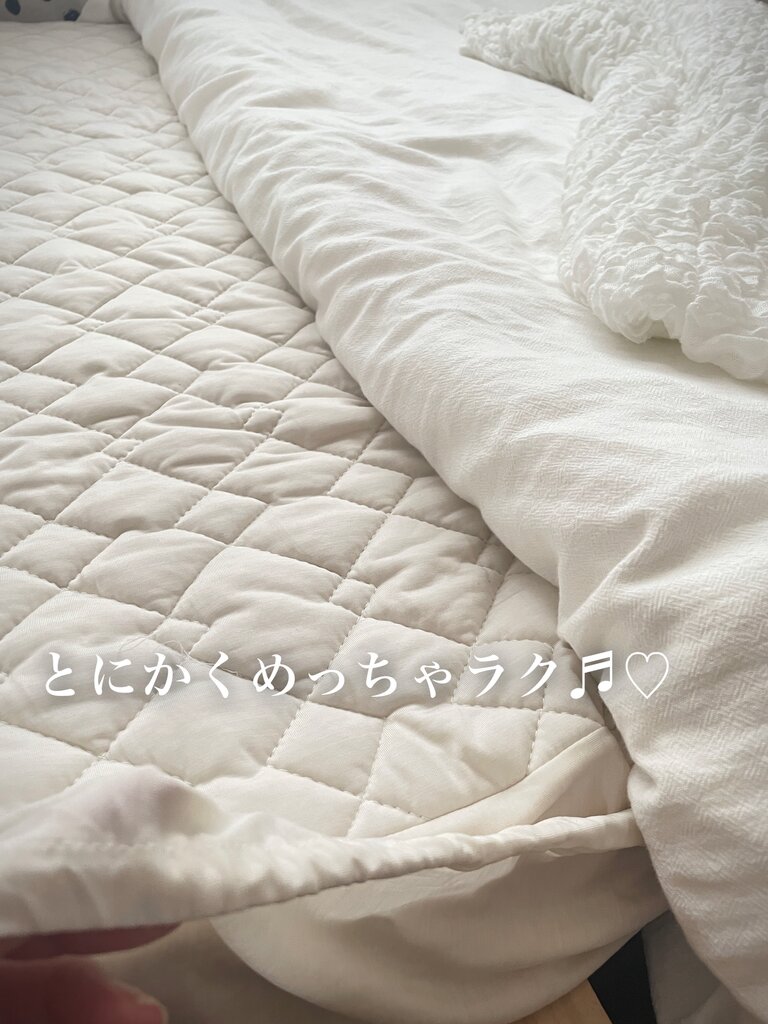 この敷きパッドのもう一つ良いところは、シーツが一体型なので洗濯の手間が省けるコト👍