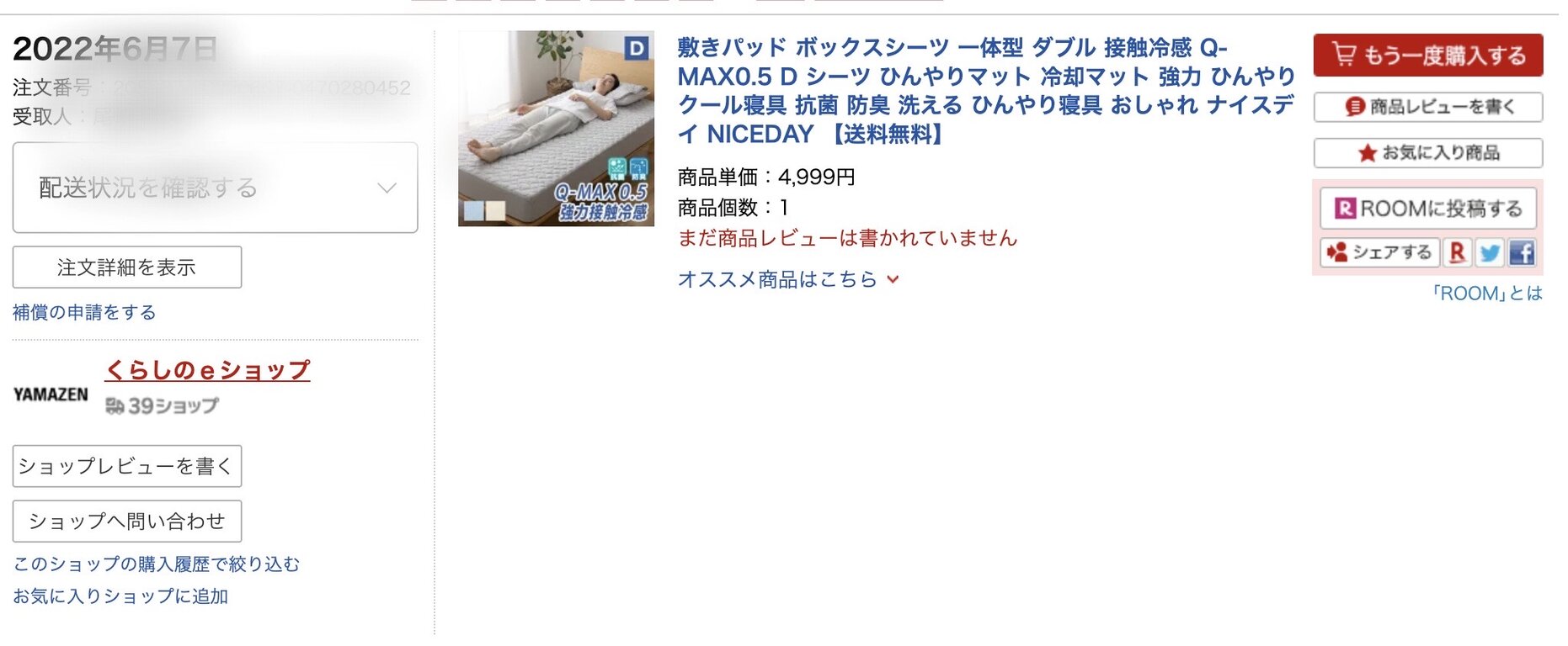 一昨日ご紹介したパッド一体型接触冷感ボックスシーツ👇
