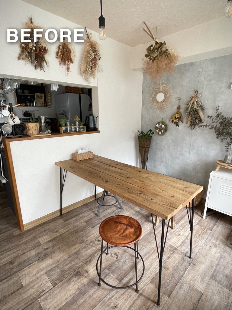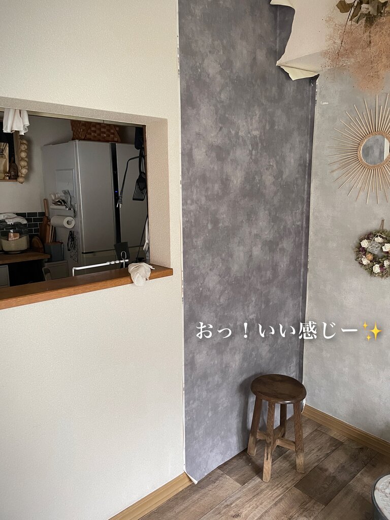 大好きなコンクリート柄はやっぱりそのままの壁紙より、ドライフラワーも映えていい感じでした♡