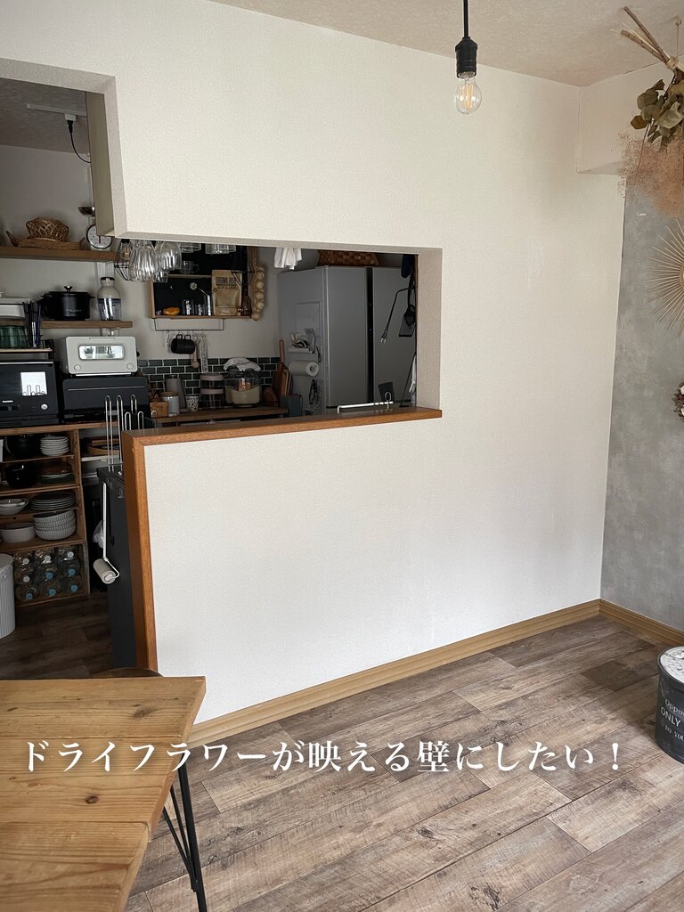 そのままの壁紙もスッキリしていて良いのだけど、せっかく飾るならドライフラワーが映えるような壁にしたいと思って♬