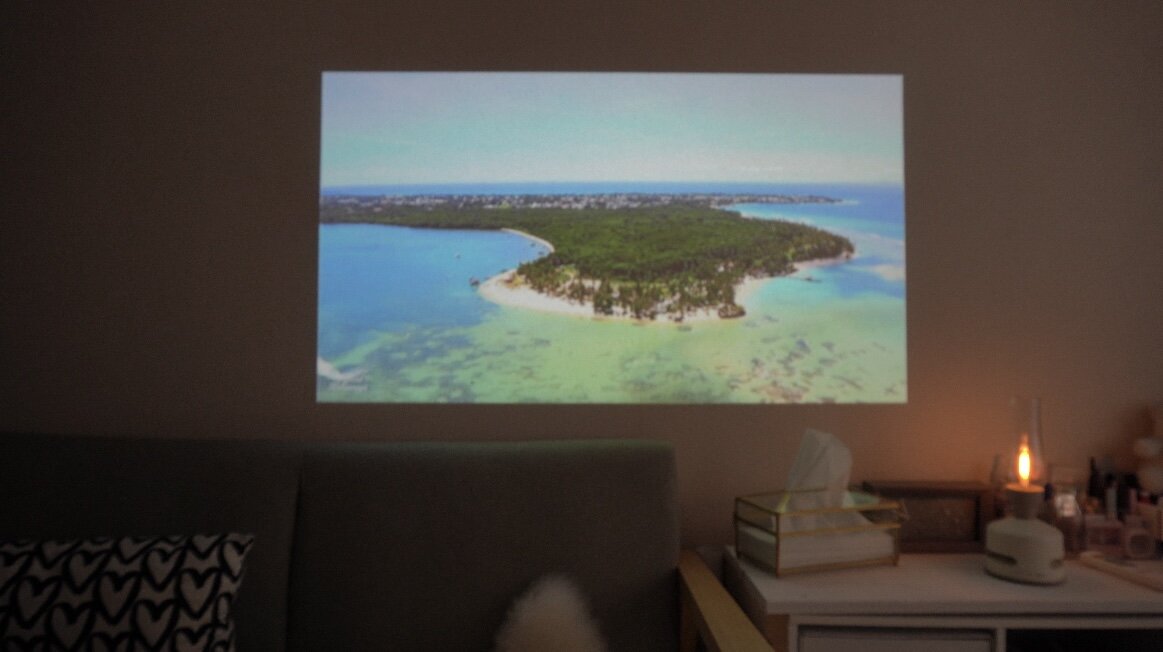 格安プロジェクター、見た目もコンパクトですしあまり期待はしていなかったのですが、画質はとても良くまだ明るい日中でも綺麗に映りました。