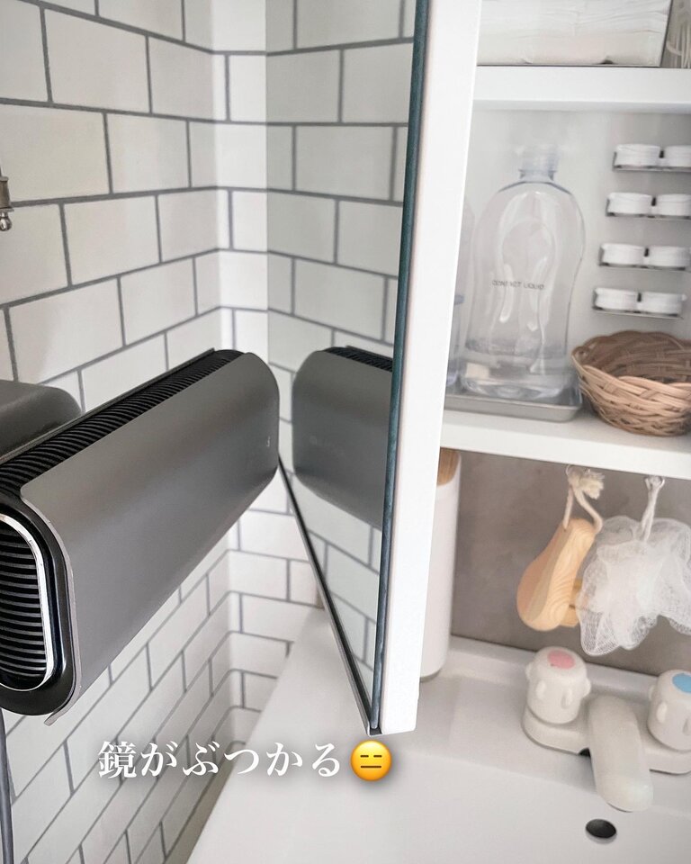 我が家の狭い洗面所では鏡が当たってしまいました(泣)