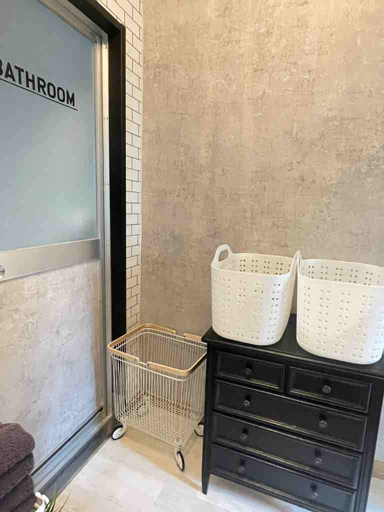 さらに今回は7年ぶりに壁紙を貼り替え、みるも無惨なお風呂のドアに手を加え、10年以上使っているチェストを塗り替えたり、ハンドドライヤーを設置したりしてようやく完成しました✨