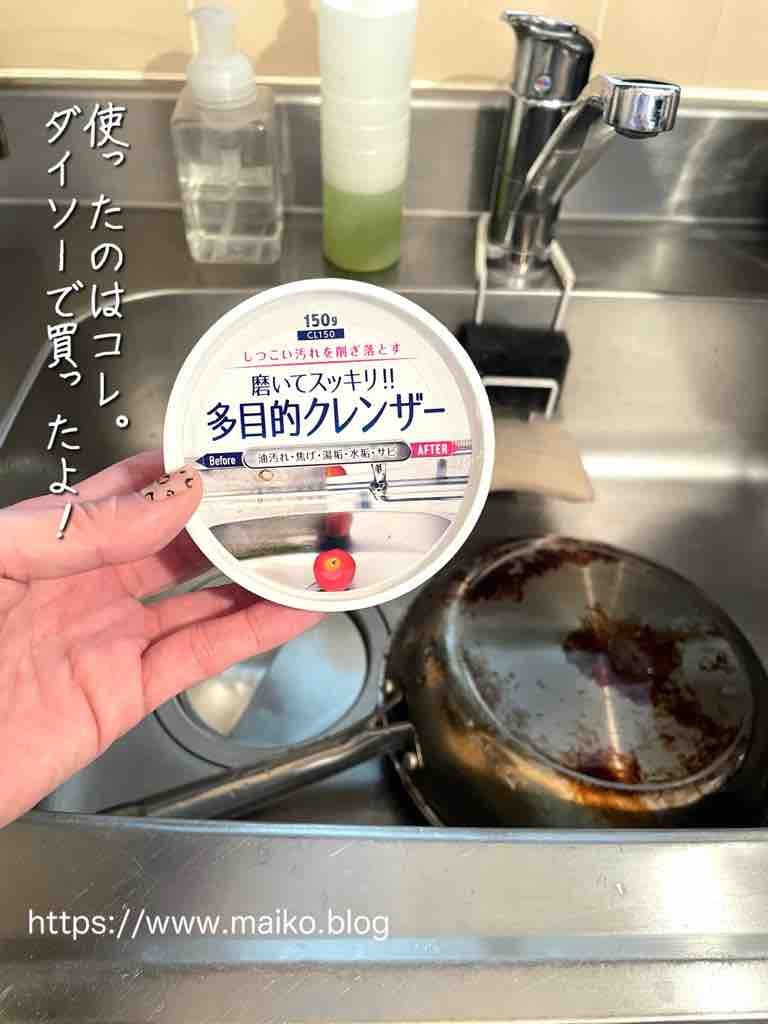 時々襲ってくる「この焦げ落としたい!」願望におすすめなのが、100円ショップで購入できる多目的クレンザー+ボンスター。