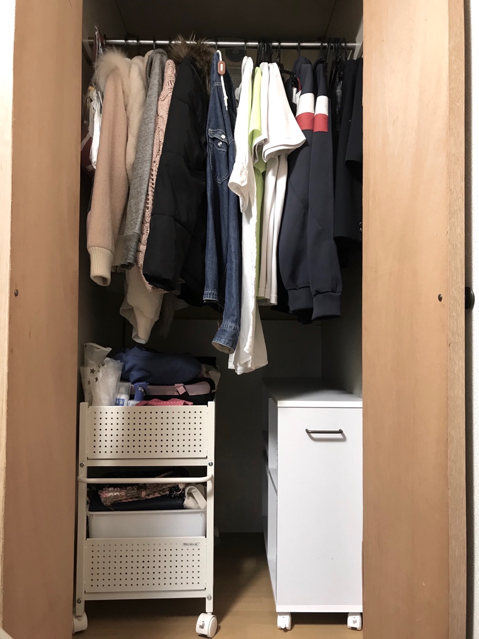 これ👇は1年半ぐらい前なので今はもう少しモノは減っていましたが、それでも使いやすいとは言えないクローゼット。