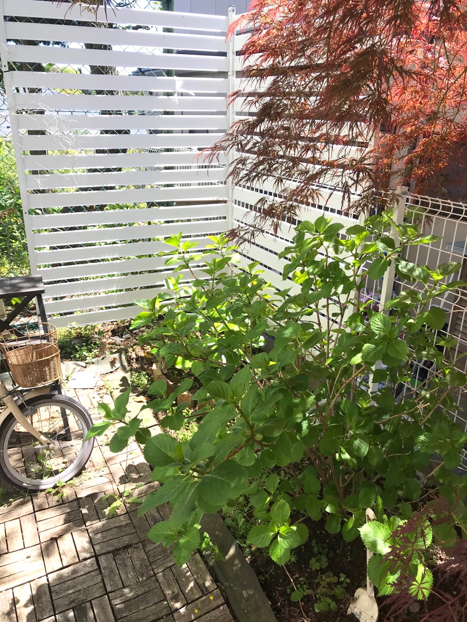 鉢植えの紫陽花を地植えにしたらこんなに大きくなっちゃって。