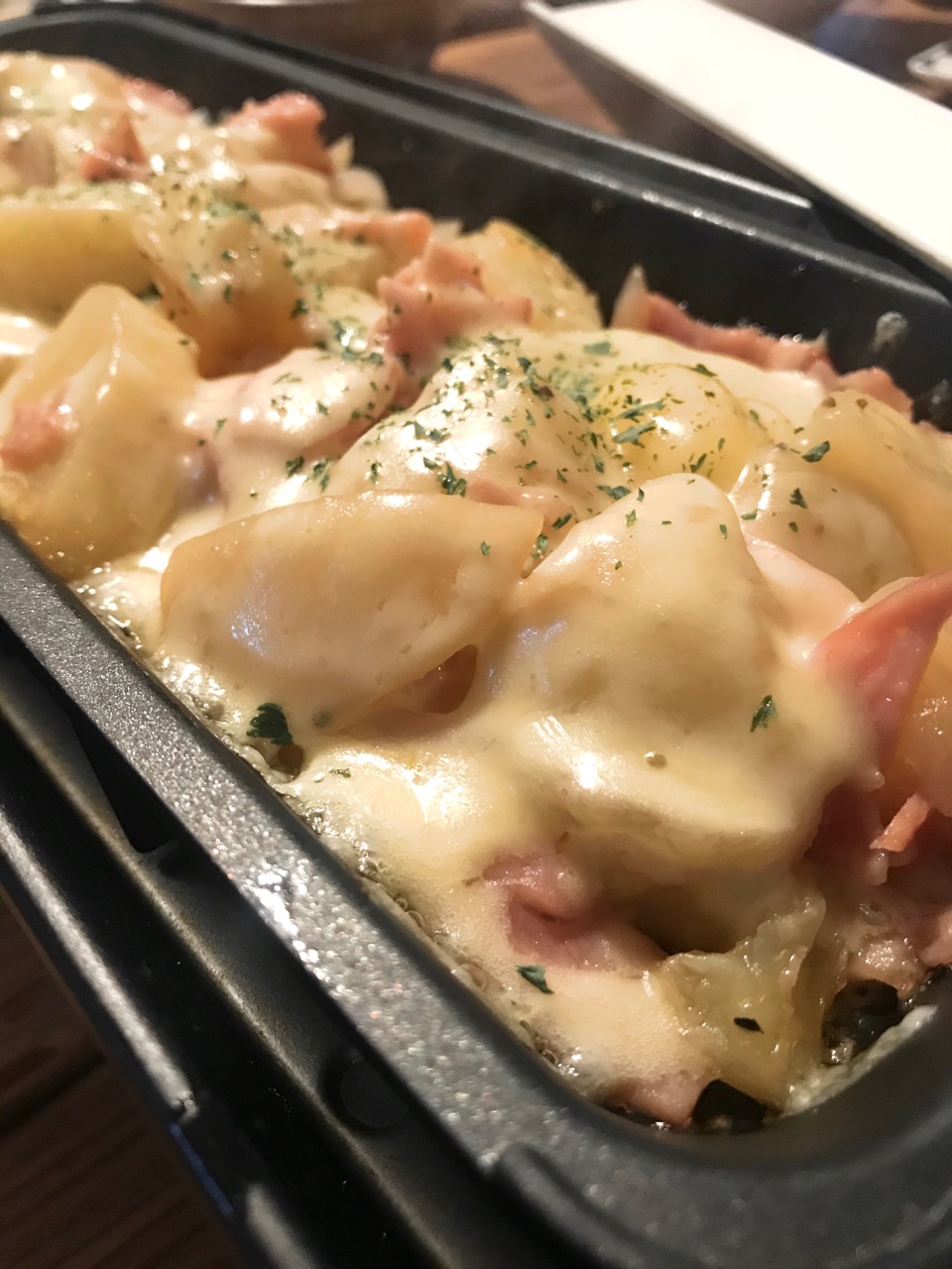 昨日は冷蔵庫に残ってたじゃがいもと玉ねぎとハムを塩コショウとにんにくバター醤油で炒めて、ピザ用チーズをのせて蓋をしただけのあと一品。(↼大きな声では言いたくないけどこれが一番好評だったというね)
