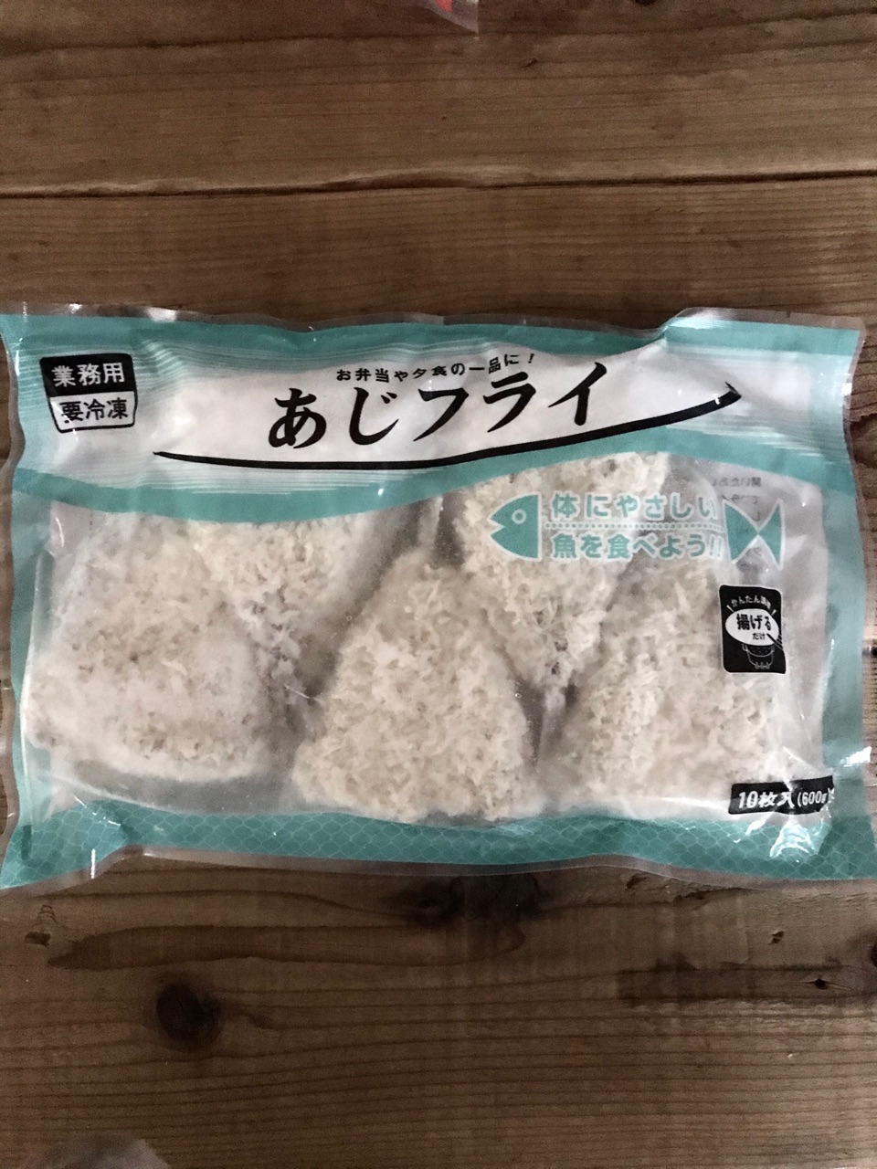 お弁当サイズの小さめあじフライも売っていますが、こちらはお弁当箱には大きすぎるくらいのあじフライが10枚入りで368円(税抜)!