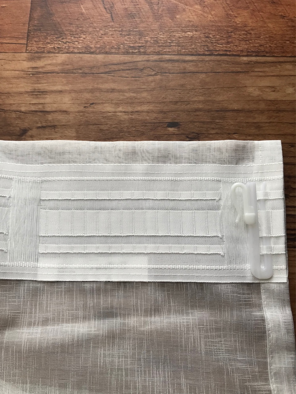 我が家はカーテンレールなので、普通のフックで差し込みましたが👇