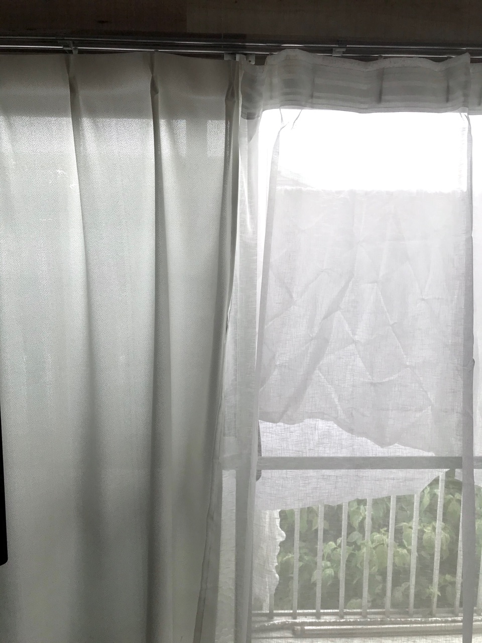 左が破れたカーテン、右が新しいIKEAのカーテンです。