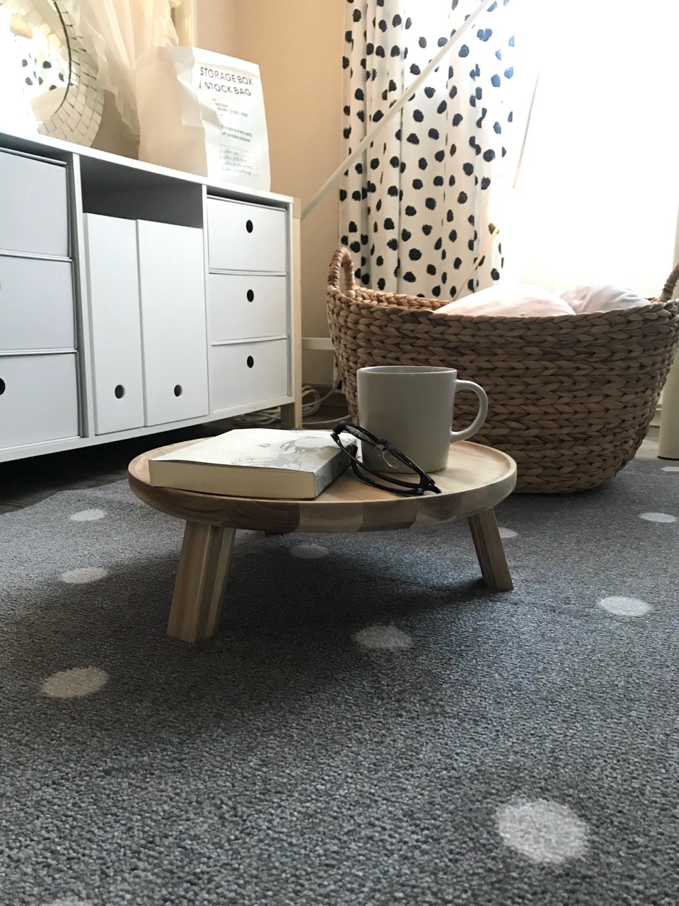 こんな感じで娘の部屋に置いたら可愛いかなーと思ったけど、そういえばこの前娘の部屋にはサイドテーブルを作ったばかりなので、このサービングテーブルは私が使おうと思います