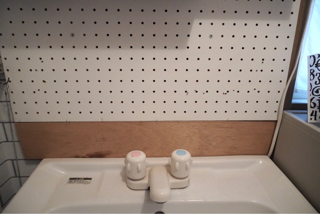 ここに以前、カインズホームで購入したタイルシールを貼っていて、もちろん水も弾くし大理石風のタイルが可愛くて気に入っていたのですが、 ギリギリ貼れそうだからとケチって貼ったら、継ぎ接ぎしたところがポロポロ落ちてきてしまって・・