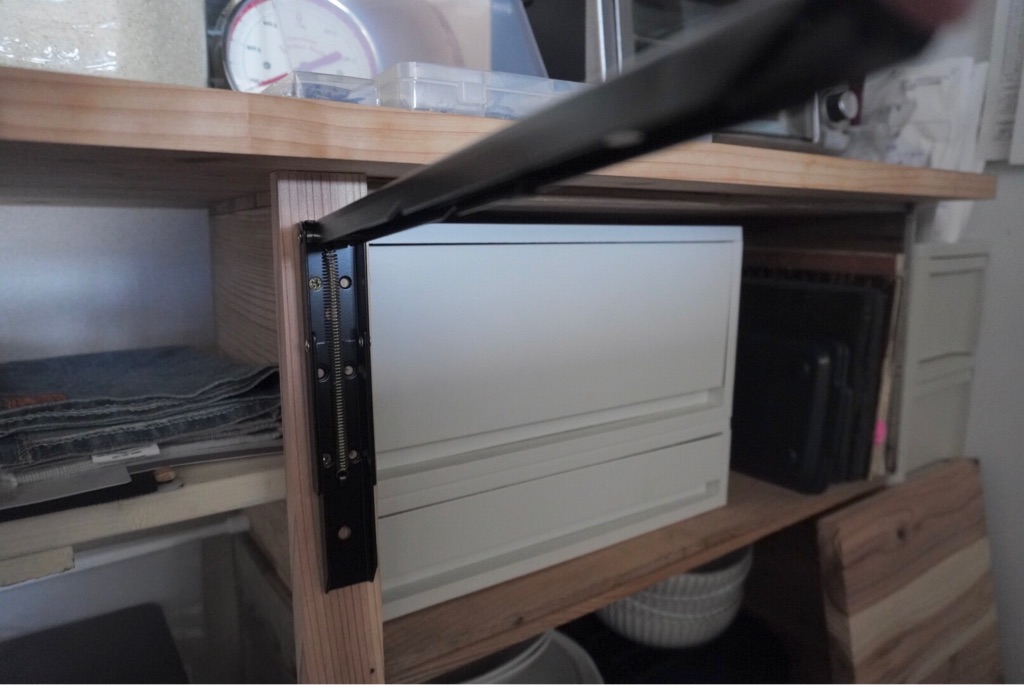 ビスなどもセットになっていて取り付けもとても簡単なので、気になる方はぜひデッドスペースを作業台に変身させてみて下さいね〜