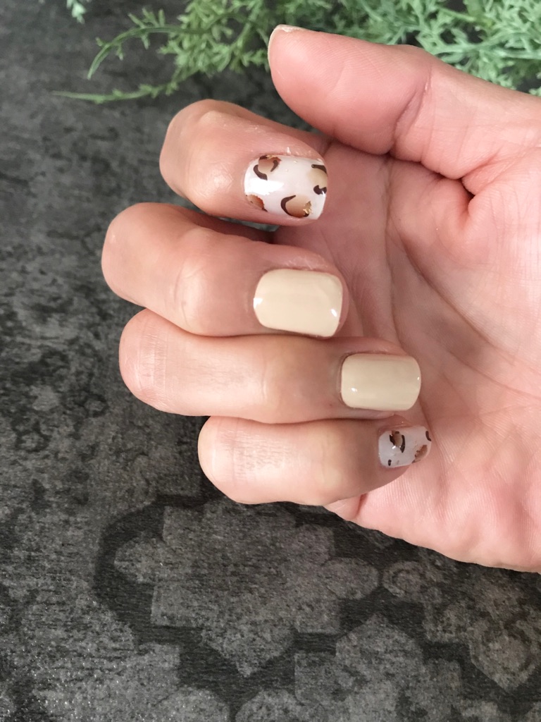 別で購入したブラウンとラメのジェルネイルシールも可愛くて色々使えそうです。