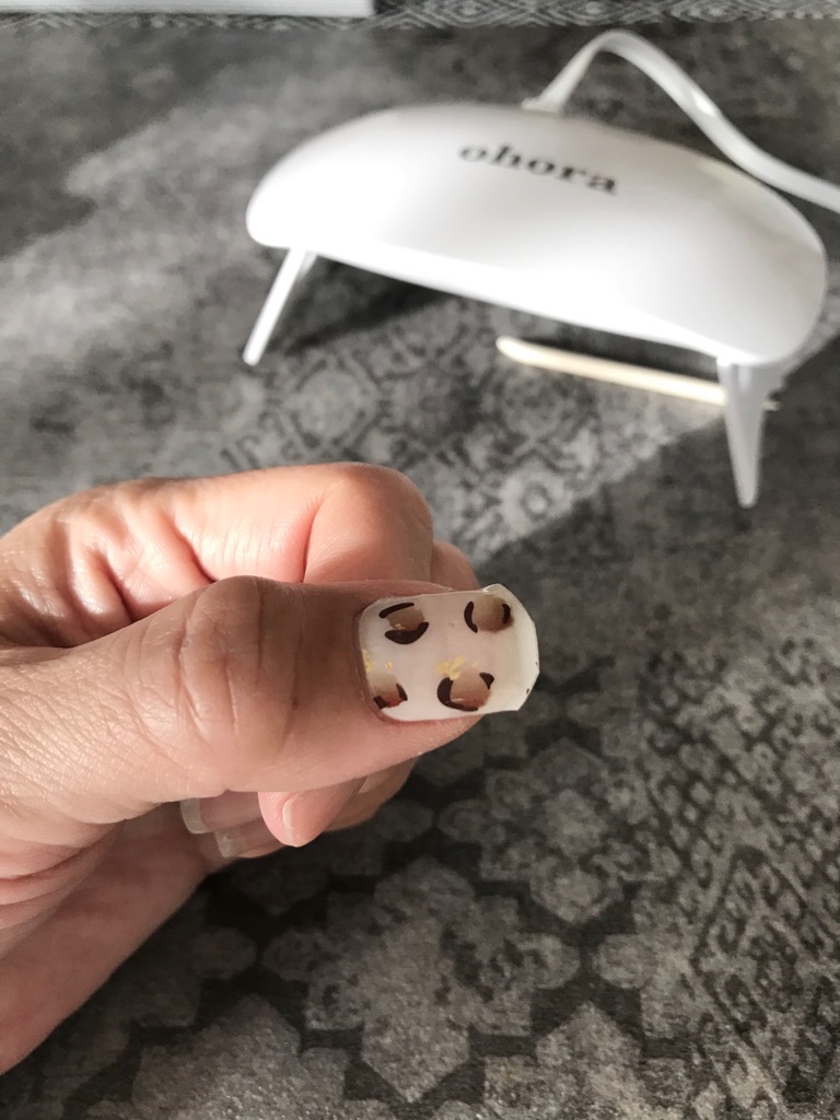 硬化したら完成ですが、私はさらに持ちを良くする為に別売りのトップコートジェルを塗って硬化しました。(塗らなくてもOKです)