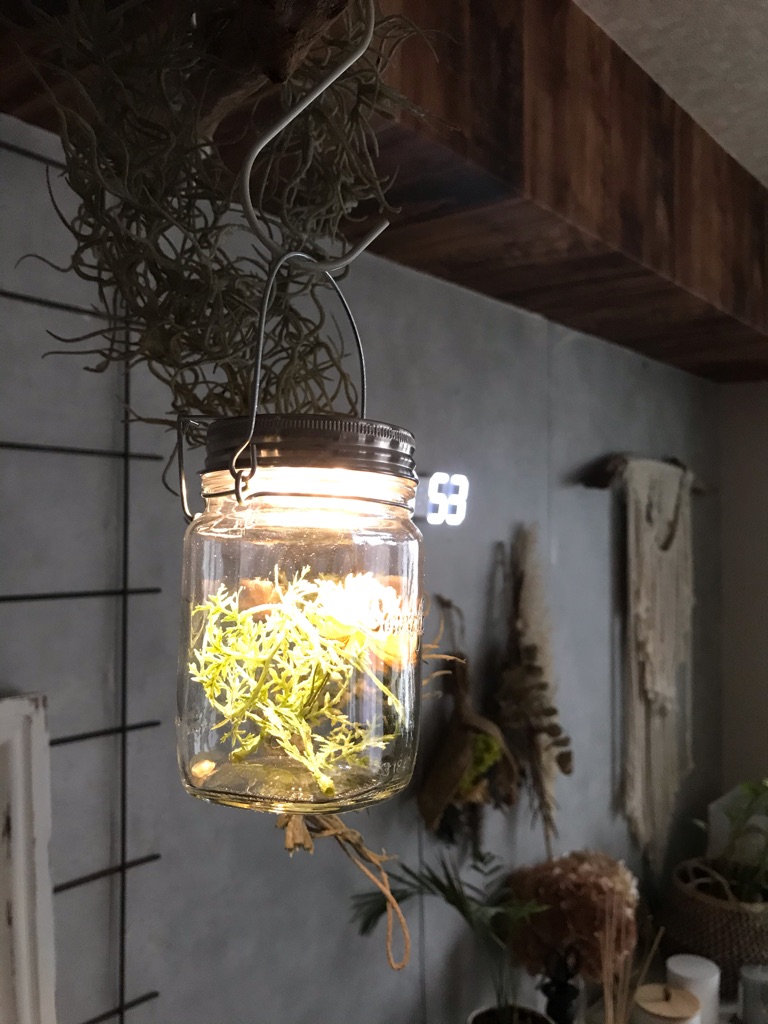 そのままライトとしてはもちろんですが、なんとソネングラスの瓶の中にはドライフラワーや貝殻など、好きなモノを入れることも出来ちゃうんです。
