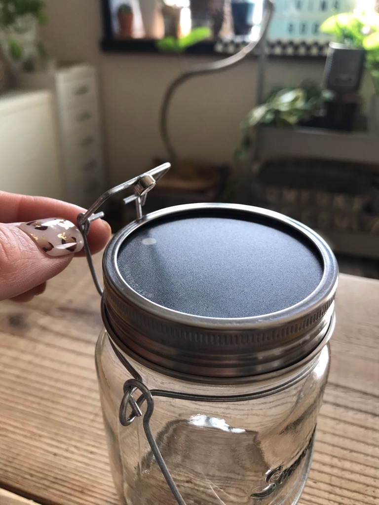 ソネングラスは瓶型のソーラーランタンで、蓋表面のソーラーパネルが日中は太陽のエネルギーをめいっぱい蓄え、暗くなるとLEDライトが優しい灯りを灯してくれます。