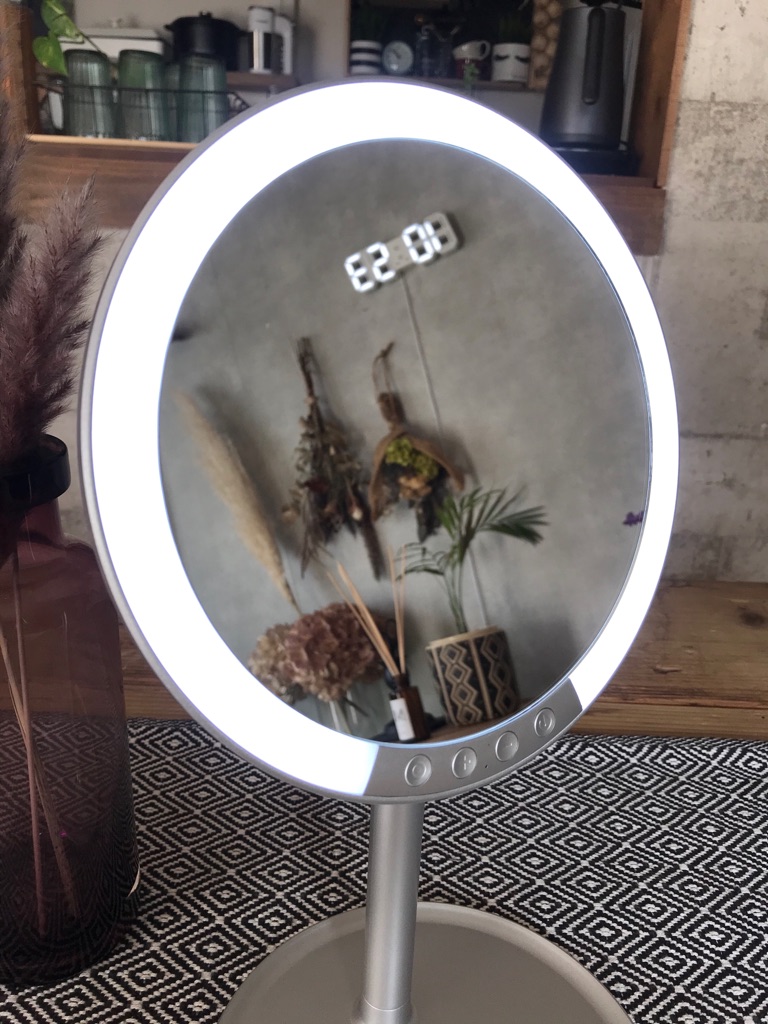 とにかく至れり尽くせリ、老眼じゃなくても女性なら嬉しい機能満載のLEDスタンドナピュアミラー。