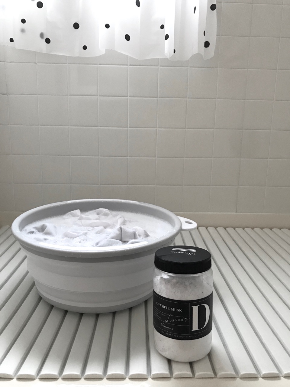 バケツなどにリネンナの洗濯洗剤を入れてつけ置きしておくだけなので、なんの手間もありません