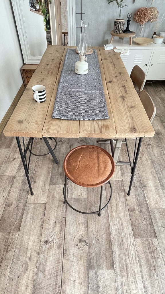 足場板のテーブル、憧れだったしめっちゃ気に入っていて