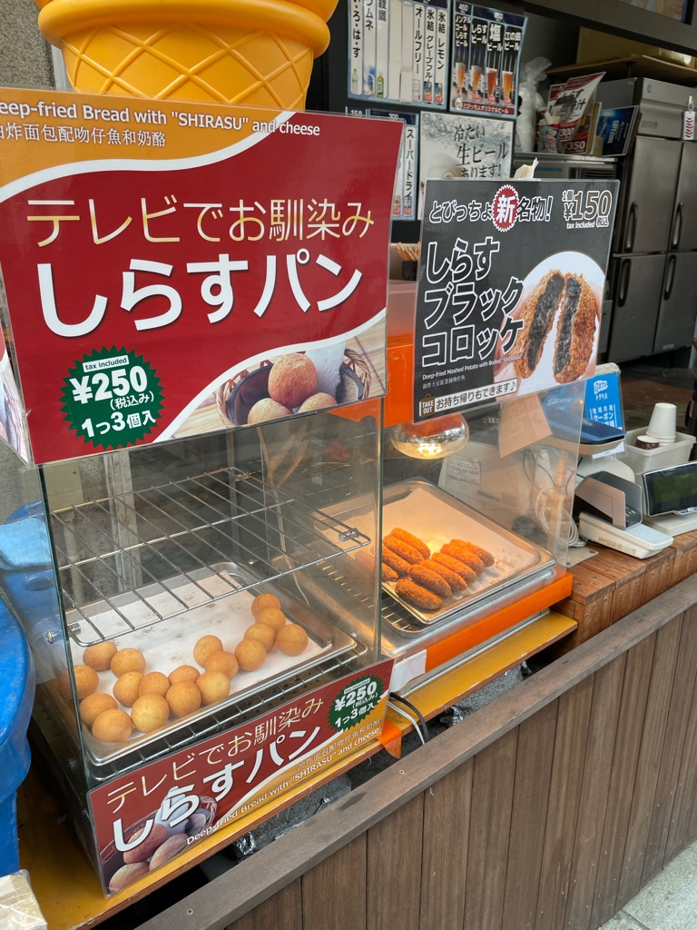 生しらす丼やしらすパン、しらすブラックコロッケ、しらすビールにしらすソフトクリームなど、珍しいものもいろいろあるので見ているだけでも楽しいです。