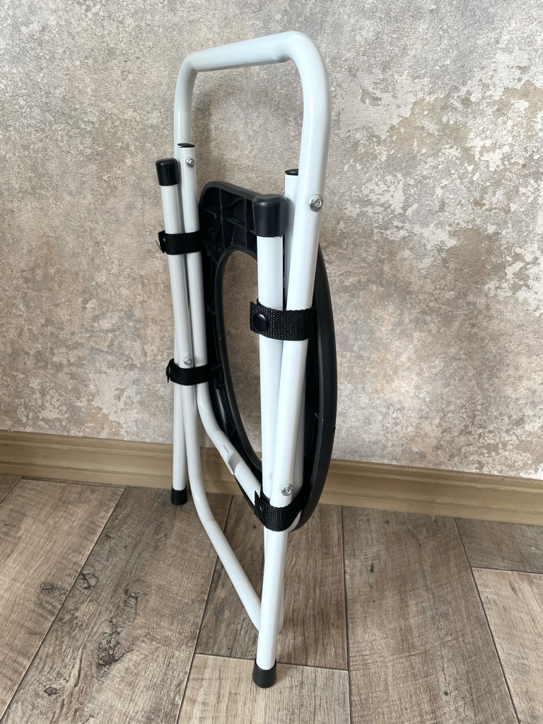 簡易トイレも段ボールを組み立てるモノなど種類もいろいろありますが、こちらはスチールとポリプロピレンで出来ていて丸洗いするコトができるので清潔に使えると思い、ちょっとお高めでしたがこちらの簡易トイレに決めました。