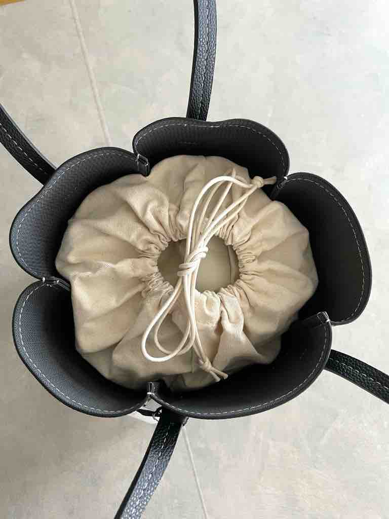 上から見るとクローバーの葉っぱのようになっていて、持ってるだけでHAPPY気分になれそうな可愛らしいバスケットバッグになっています。