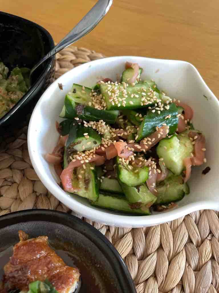梅ザーサイを叩いたきゅうりを和えて、ごま油を少し垂らしてみました。